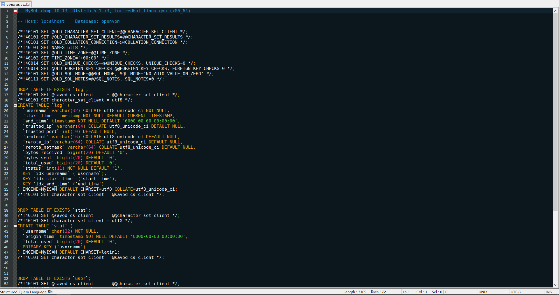 — Host: localhost Database: openvpn